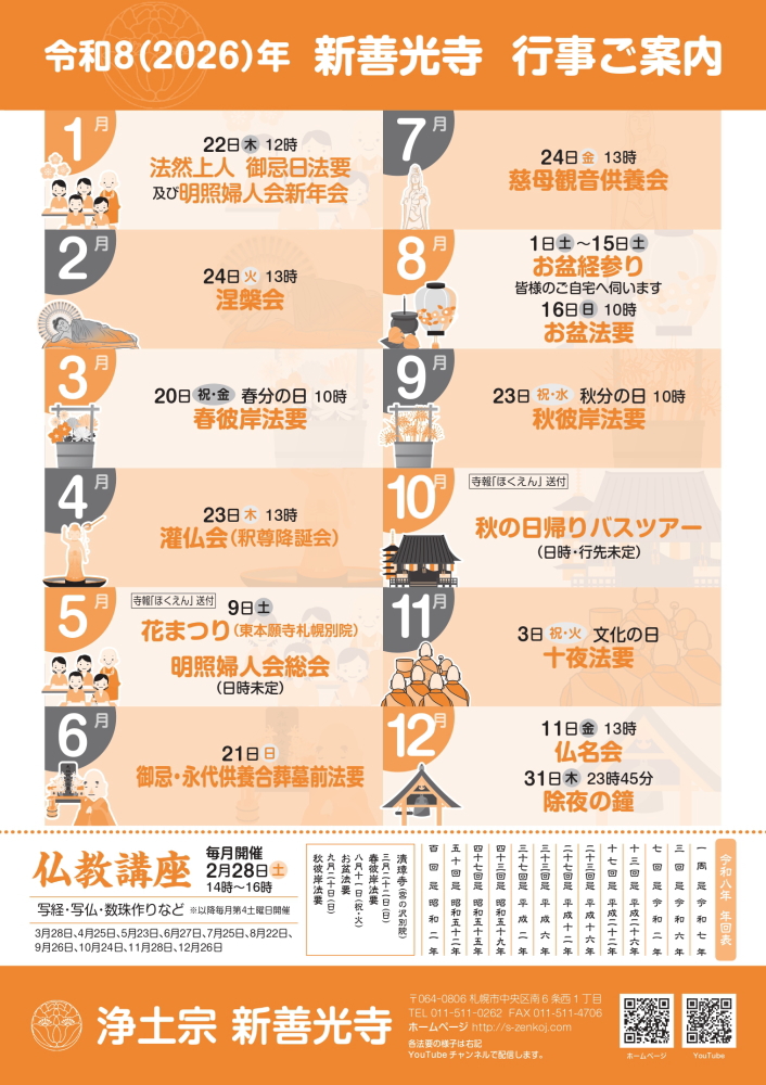 北海道札幌市中央区南6条西1丁目2 011-511-0262 011-511-4706 お問い合わせメールフォーム 新善光寺ブログ 新善光寺facebook 新善光寺X(twitter) 新善光寺Youtubeチャンネル
